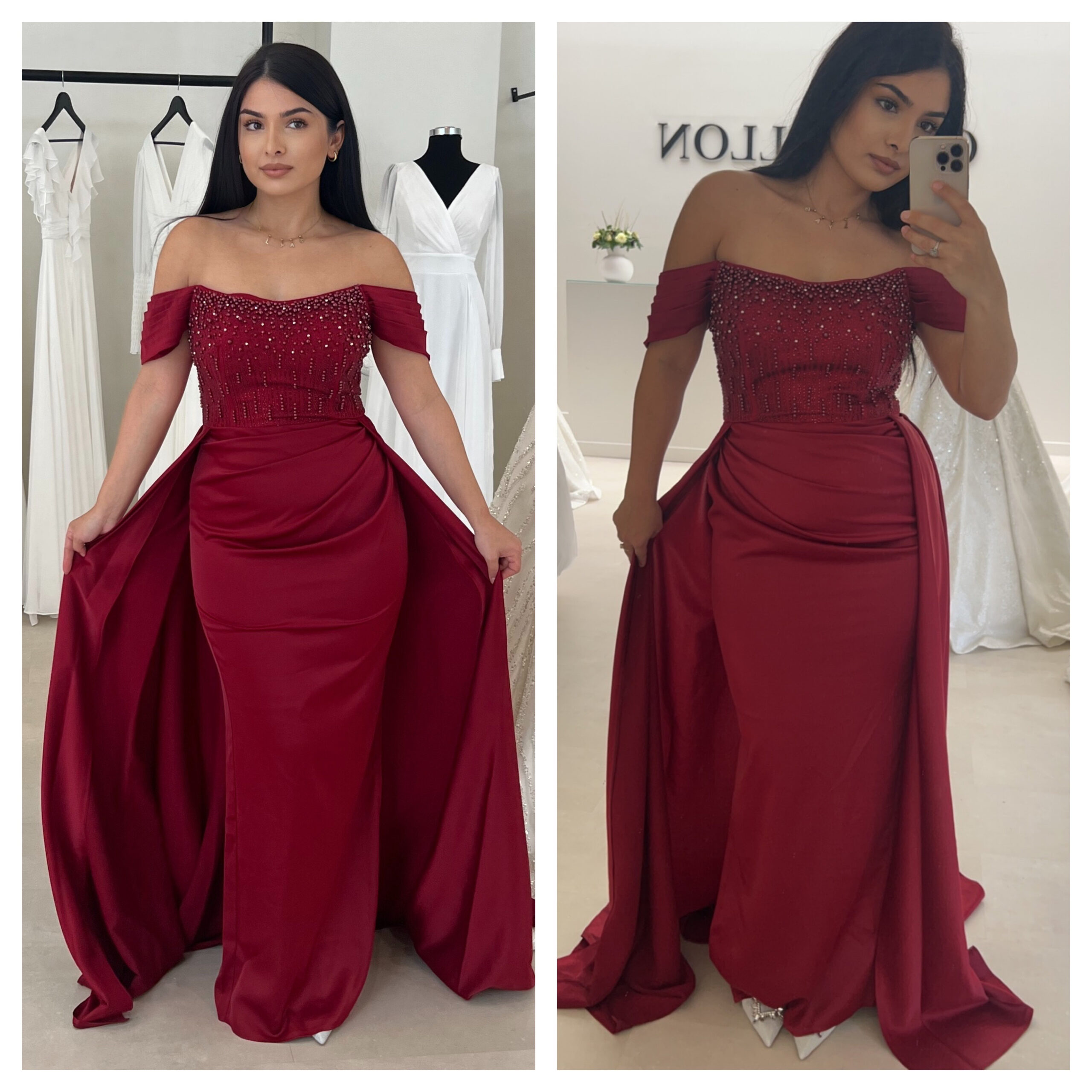 Be the first to review “Robe rouge bordeaux perle”