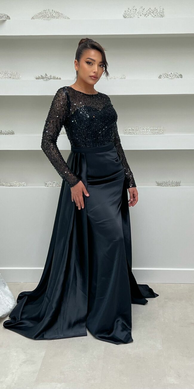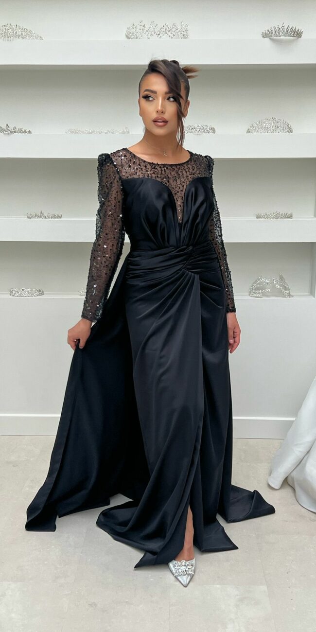 Robe cache-coeur noire manches semi-transparentes