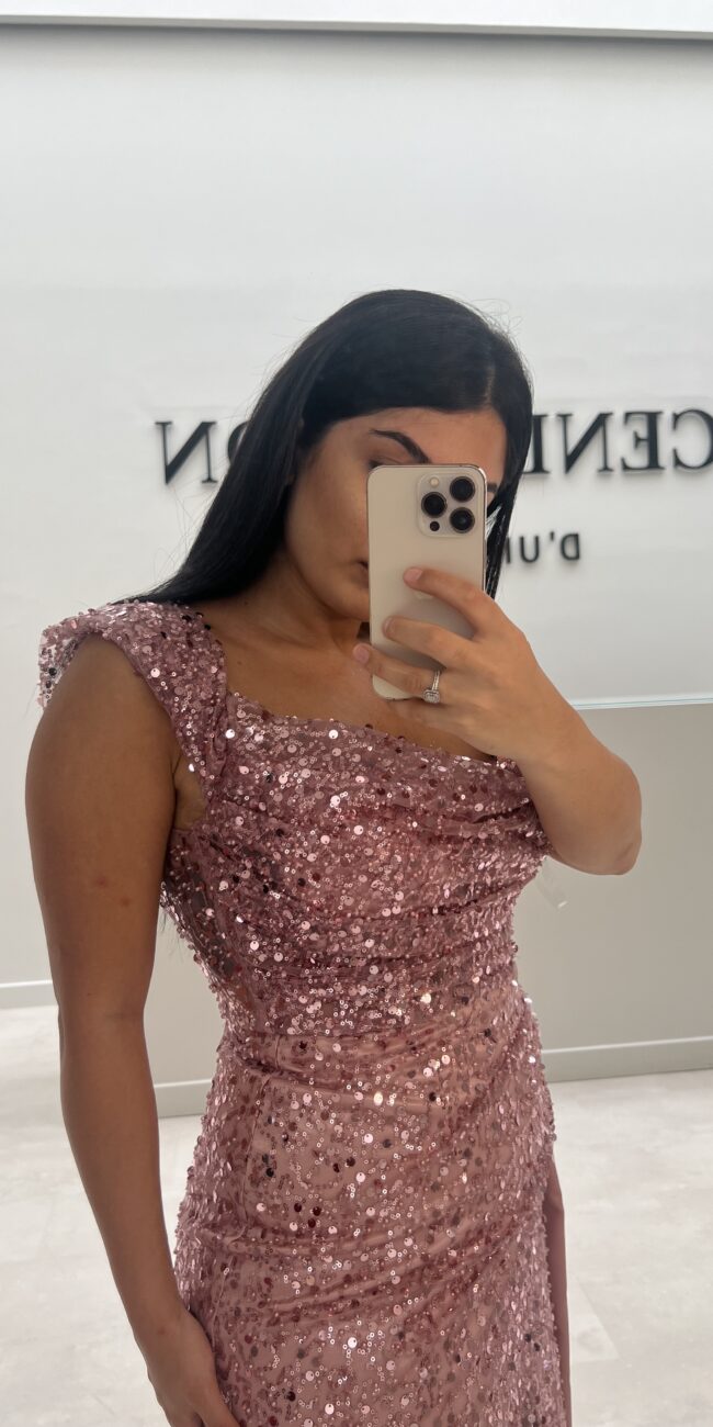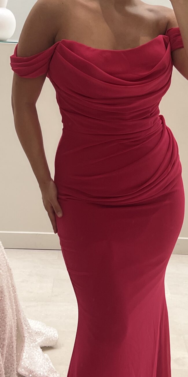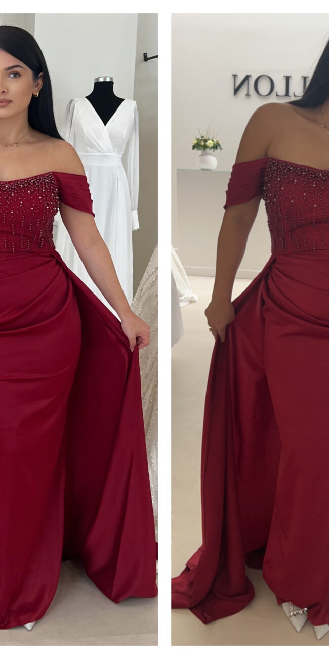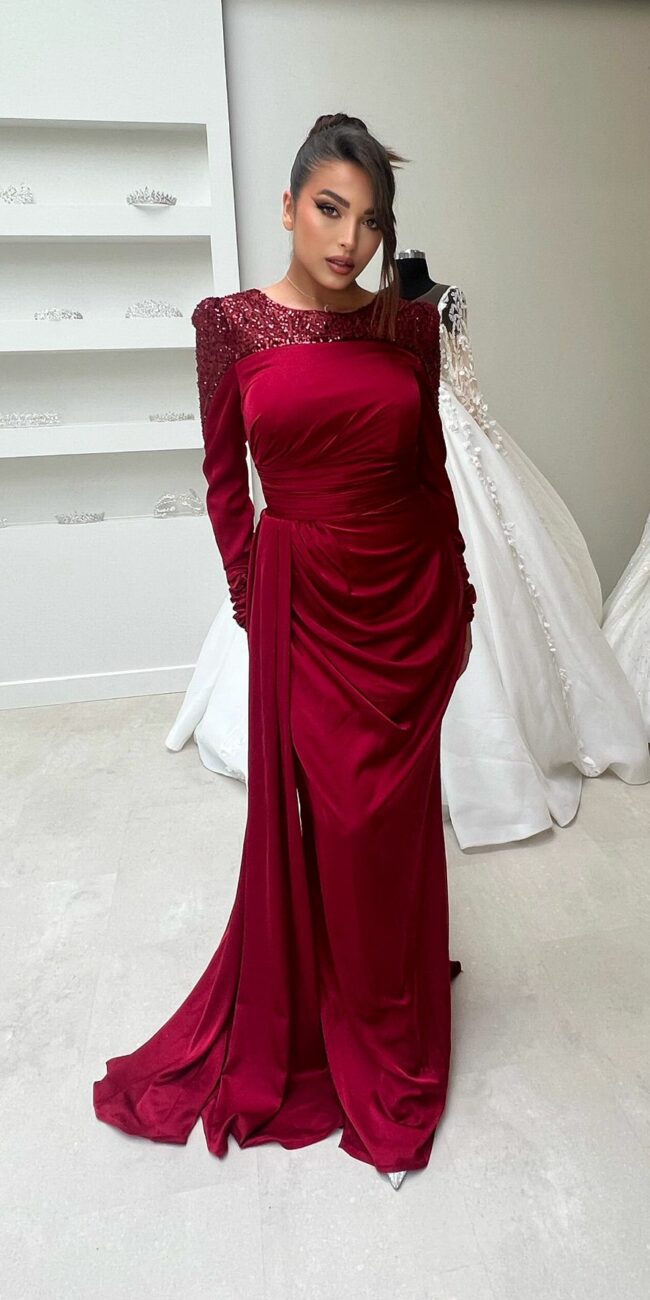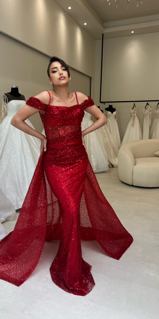 Robe rouge bustier à manches sequins