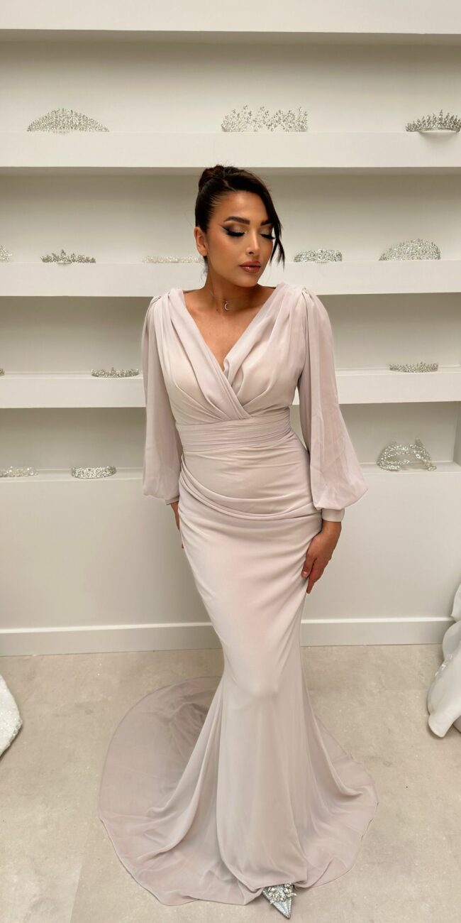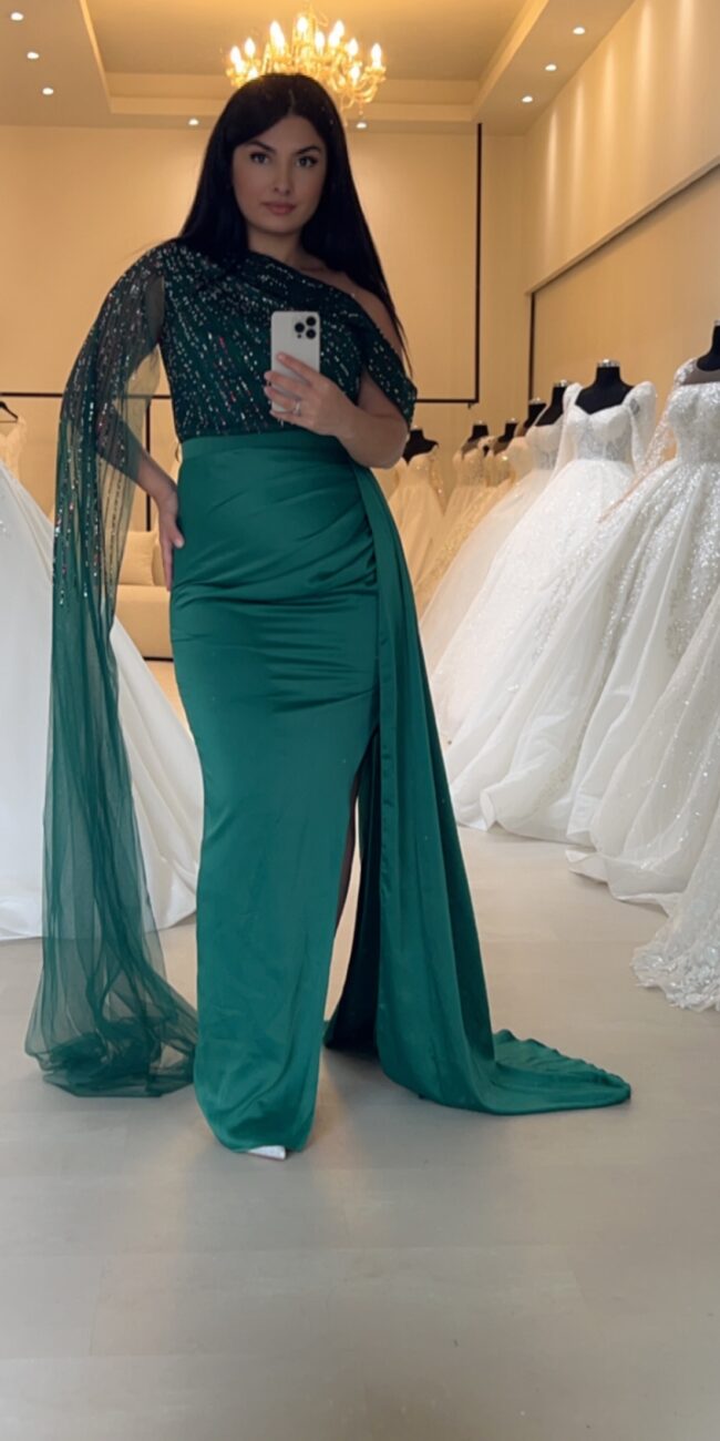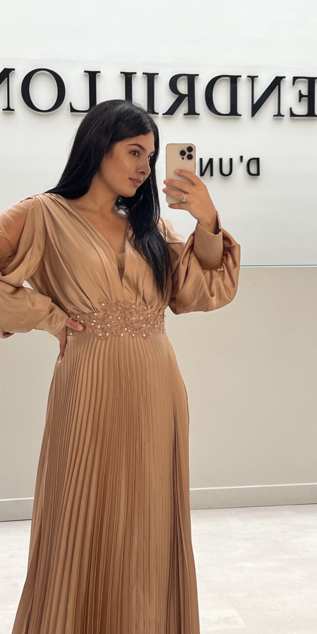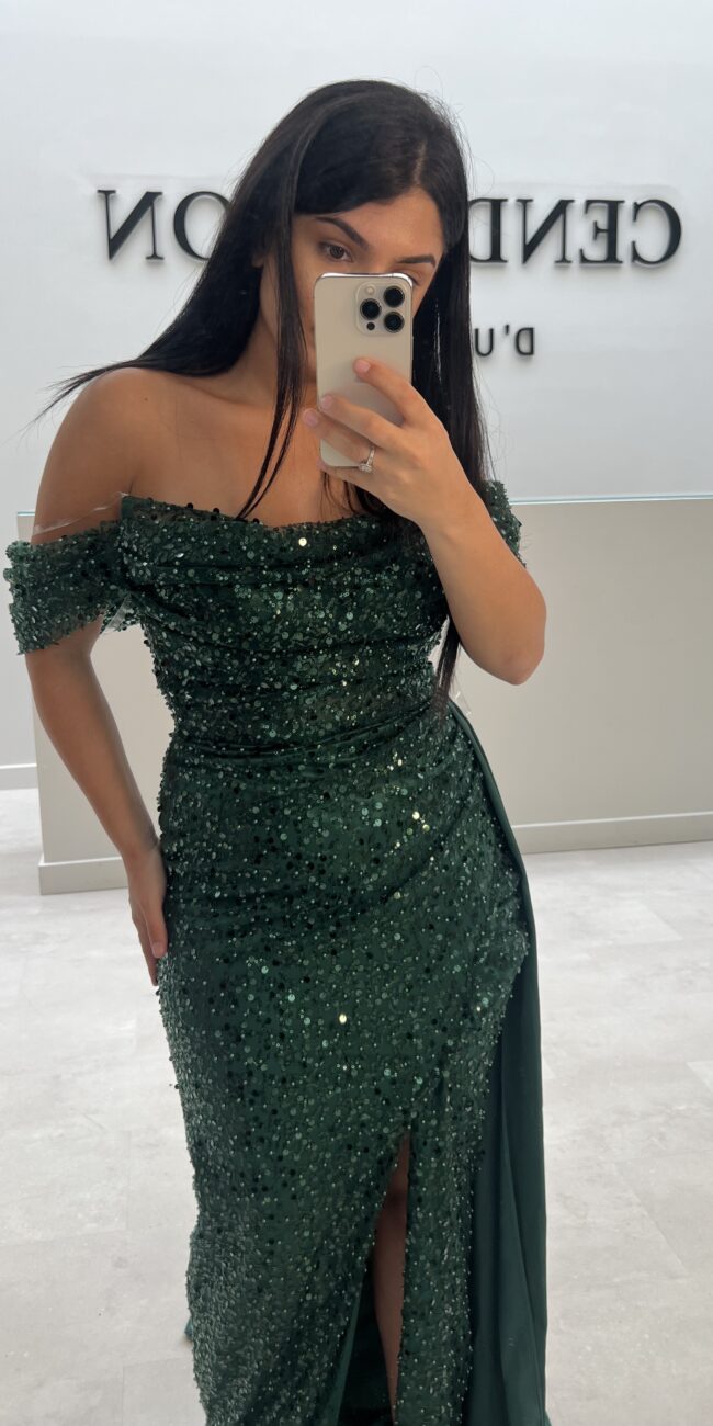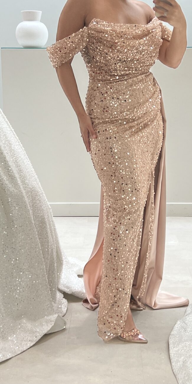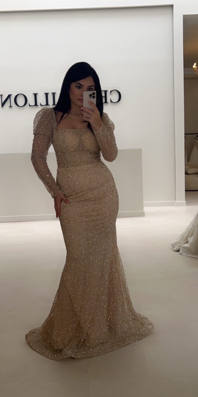 Robe rouge bustier à manches sequins